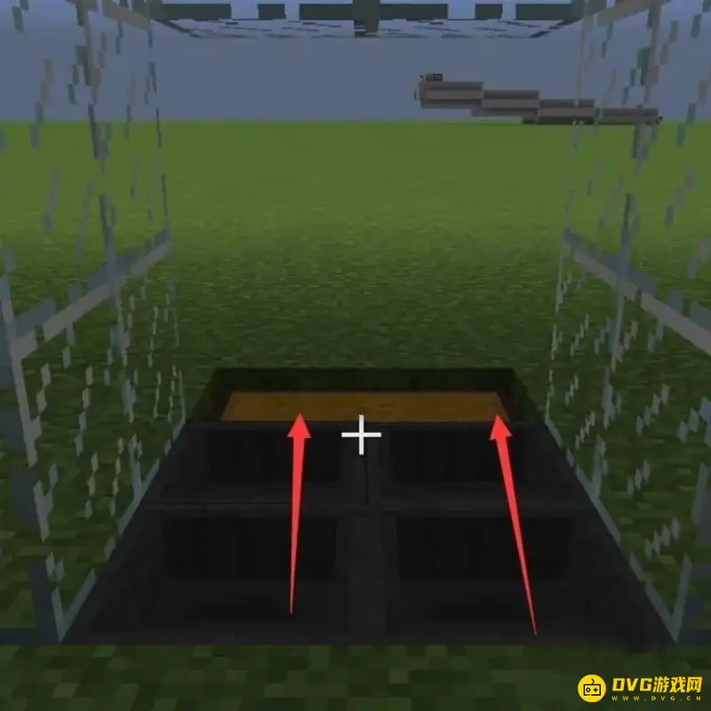 14、在底部挖一个2X1的区域,放入两个小箱子。刷怪塔的下面可以像这样不留门,也可以放两个栅栏门,防止没摔死的怪物乱跑。