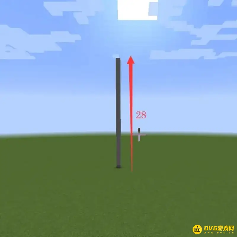 1、首先是建造塔的柱子,也就是怪物摔落的通道,不需要太大,太大的话刷新的怪物不好杀,收集物品也不方便。这里推荐大家搭建一个高28格的柱子。这样保证怪物一定会被摔死。高度决定是否能把怪物摔死,在《我的世界》中普通怪物如果摔落24格就会直接摔死了。这里先建造一个刷物品的刷怪塔,所以直接建到28格高就行了。