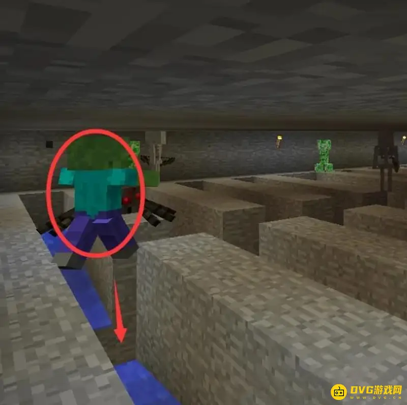 17、以上刷怪塔就完成了,下面我们看看具体的效果吧。这是刷怪塔刷出来的怪物。刷怪塔内部会在所有过道中刷新出来,刷新出来的怪物是没得去的,走几步就会掉到水里。而掉到水里就一定会被冲下来摔死。两格高的高度是防止怪物一格高能再跳上来。两格高怪物掉进水里是必死的。