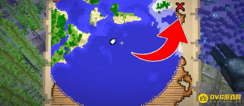 进入我的世界游戏,准备好自己的藏宝图,根据宝图上的位置,前往标注“红叉”的地方,就可以看到“红叉”。