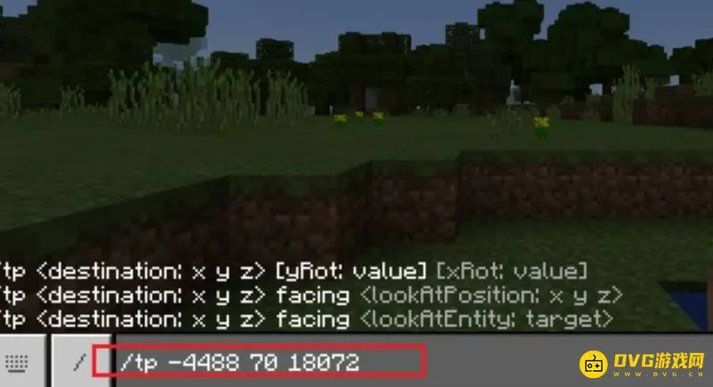 4.接着继续向刚才那样输入指令,这次的指令是输入/tp加刚才的林地府邸的坐标,如图所示。