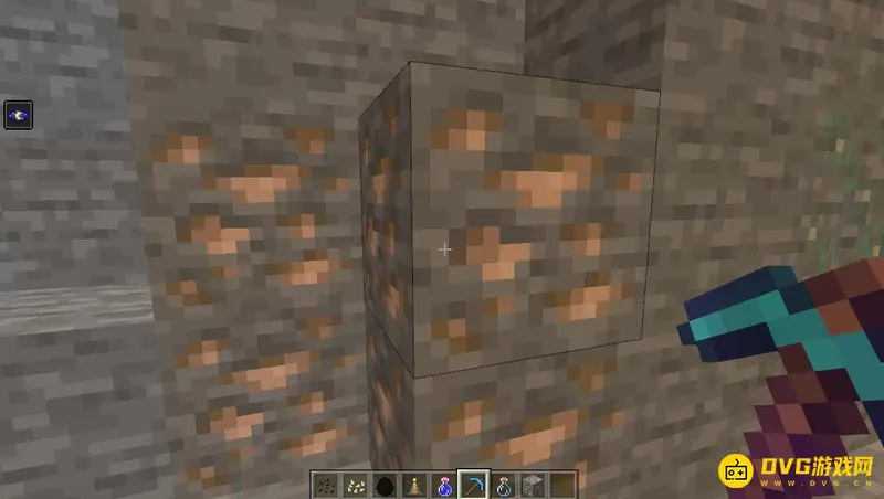 2,然后我们需要找到铁矿石,用镐子挖下铁矿石,然后熔炼成铁锭。