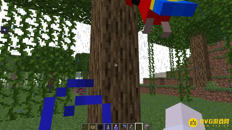 1,首先我们需要去森林里找树,直接用手砍下树干,然后用工作台分解成四块木板。