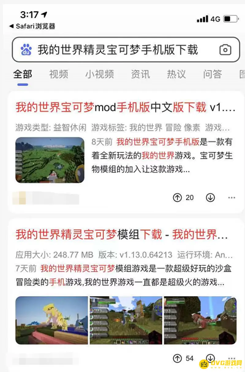 利用手机自带的浏览器,在网上搜索我的世界精灵宝可梦。