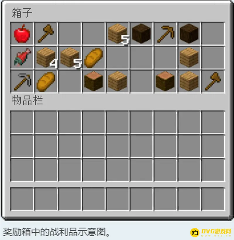 奖励箱是出现在玩家生成点附近的一个箱子,只在生成世界选项中“奖励箱”选项打开时存在。其中会生成半随机的基本物品资源,包括工具、方块和食物等,用于帮助玩家度过早期生存阶段。