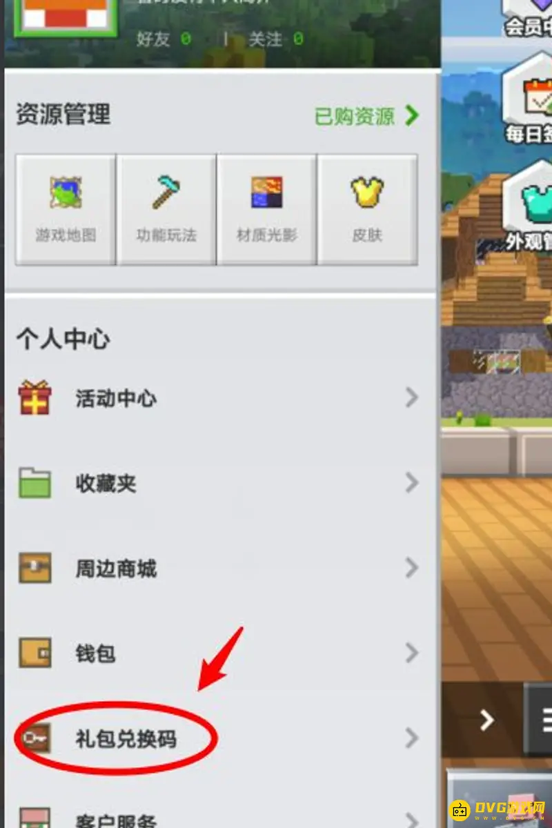 2、在左侧的窗口中,选择礼包兑换码的选项