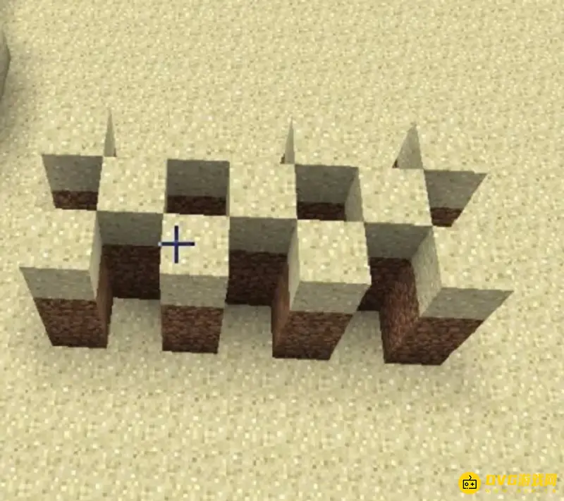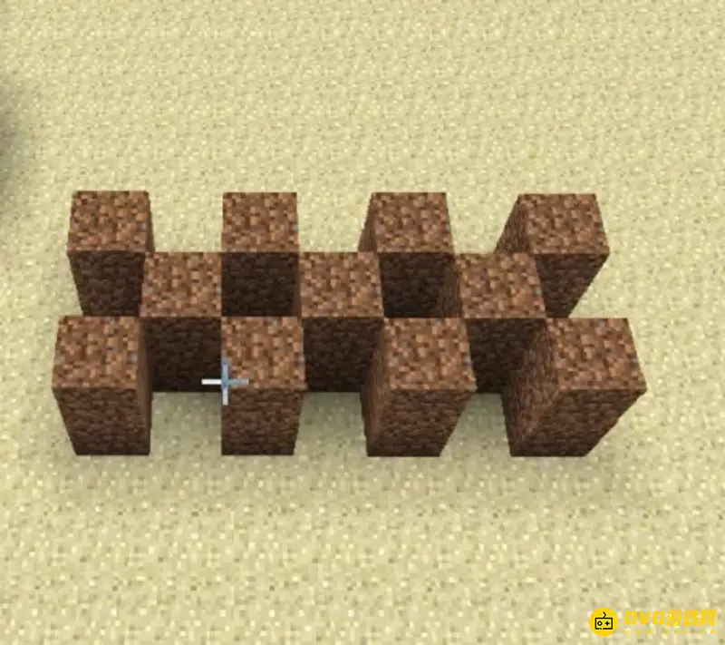 1.首先先用泥土做一个高2格高的斜向间隔1的墙。