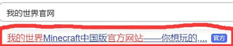 1,首先在浏览器中搜索我的世界官网,点击进入官网。