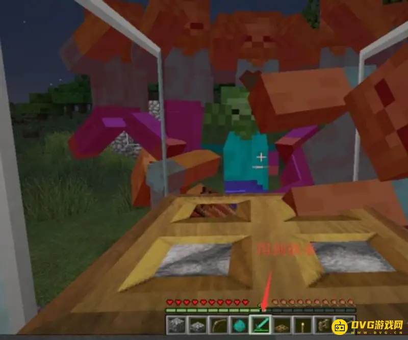 8、如果你是对付僵尸,只需要打开活板门,僵尸就会围拢过来,你只需要拿剑砍杀即可,僵尸伤害不到你的。