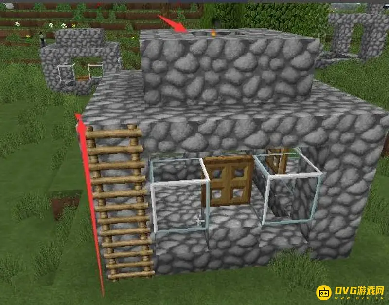 7、在周围随便一根立柱上铺三个梯子,方便你爬上盖顶从中间的洞跳进碉堡内。
