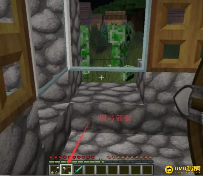 9、如果是对付苦力怕,那么你需要关上活板门,苦力怕就不会爆炸了。你这时需要跳起来从上面的缝隙对外砍苦力怕,或者从下方缝隙用弓箭射苦力怕的脚。
