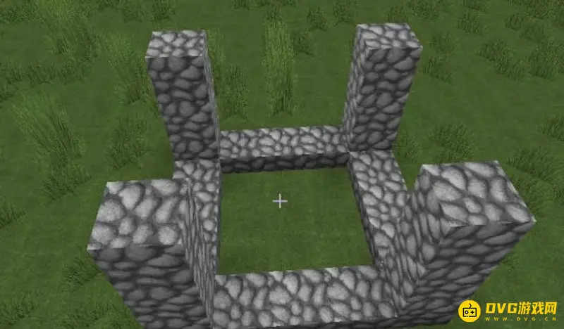 1、做一个5x5的碉堡地基,在四个角落立起3格高的石柱,然后在石柱之间连接一层圆石半砖。