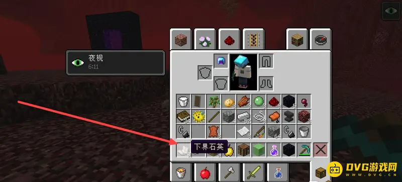 4、采集矿石后我们不仅可以获得经验,还可以获得我们的下界石英,而且这里的石英资源非常多。