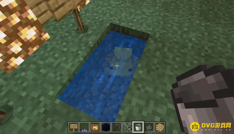 首先我们需要用工作台合成一个铁桶,然后拿着铁桶对着美西螈按鼠标右键,就可以抓住美西螈了。