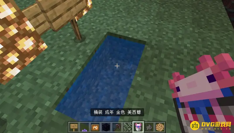 2,然后我们再去找到一只美西螈,然后拿着铁桶对着美西螈按鼠标右键。