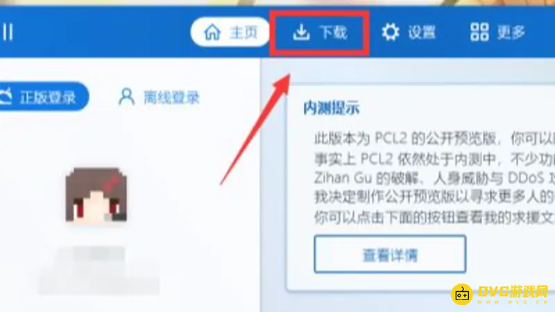 2.在启动器界面的上方,点击“下载”按钮,进入下载界面。
