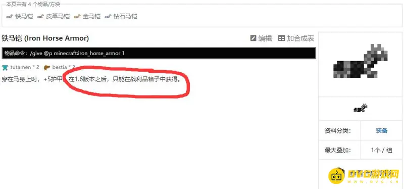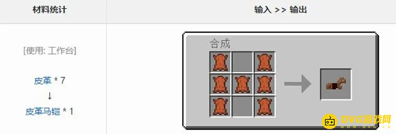 2,然后找到马铠甲的相关说明,就会发现皮革马铠可以由皮革合成。