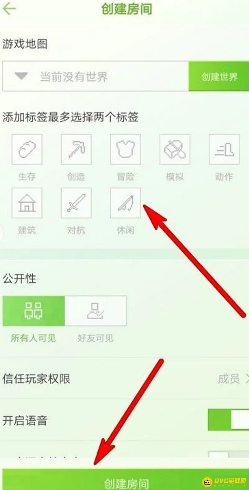8.设置房间权限点击创建房间,等待其他玩家加入。