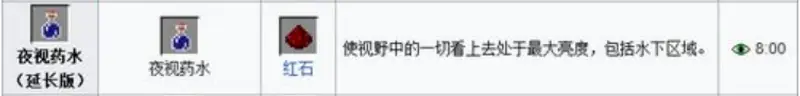 9.夜视药水延长版=粗制药水 金萝卜 红石粉(8:00)使用有效时间延长至8分钟