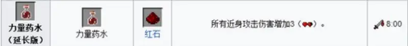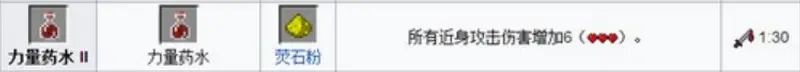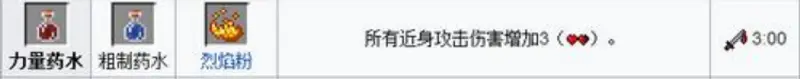 4.力量药水=粗制药水 烈焰粉(3:00)所有的近身攻击伤害 130