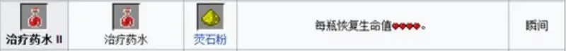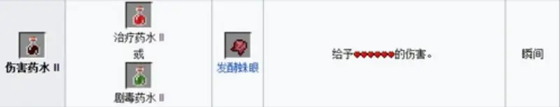 16.伤害药水Ⅱ=粗制药水 闪烁的西瓜 发酵蛛眼 萤石粉(瞬间伤害给予6颗心的伤害)