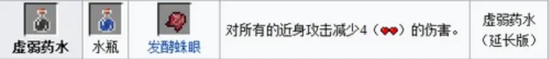 4.虚弱药水=发酵蛛眼 水瓶(1:30)对所有的近身攻击减少伤害2颗心