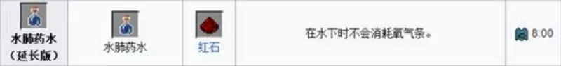 12.水肺药水延长版=粗制药水 河豚 红石粉(8:00)使用有效时间延长至8分钟