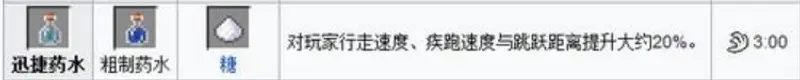 5.迅捷药水=粗制药水 糖(3:00)提升玩家行动速度 20
