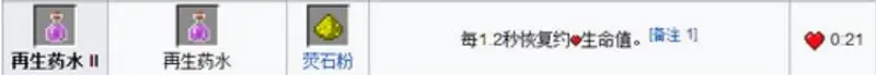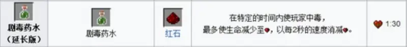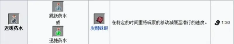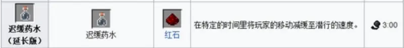 20.迟缓药水延长版=粗制药水 糖 发酵蛛眼 红石粉(4:00)使用有效时间延长至4分钟