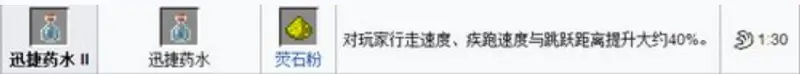 8.迅捷药水Ⅱ=粗制药水 糖 萤石粉(1:30)提升玩家行动速度 40