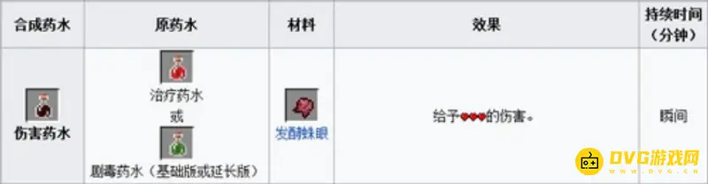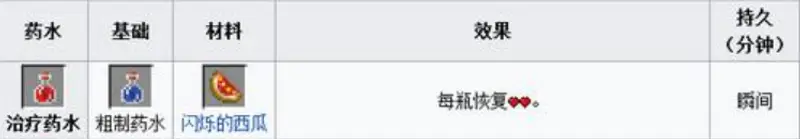 15.伤害药水=粗制药水 闪烁的西瓜 发酵蛛眼(瞬间伤害给予3颗心的伤害)