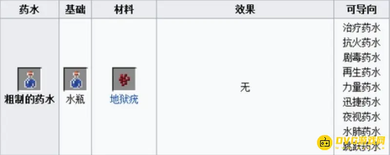 1.粗制的药水=地狱疣 水瓶(制作药水的基础,直接喝无任何作用)