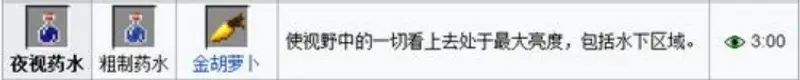 6.夜视药水=粗制药水 金萝卜(3:00)使玩家视野范围内处于最大亮度,包括水下