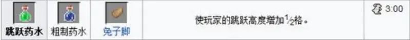 8.跳跃药水=粗制药水 兔子脚(3:00)使玩家跳跃增高二分之一格