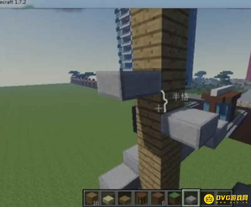1.取得台阶,使用任意方块堆一根柱子,高度是玩家房子的高度。