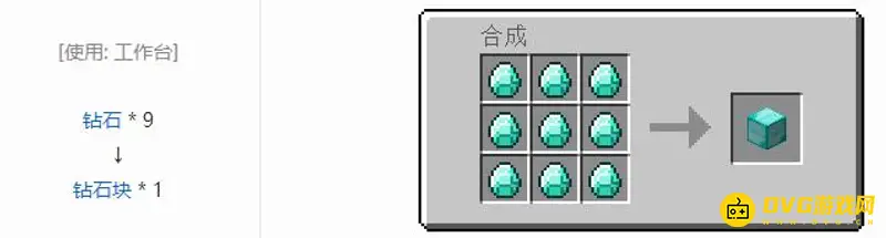 2,接着我们需要使用工作台,用九个钻石合成一个钻石块。