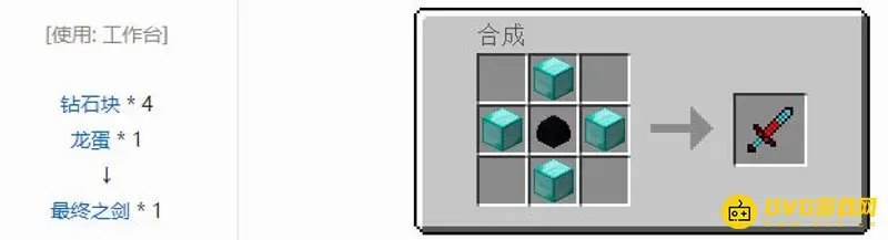 用4个钻石块和一个龙蛋就可以制作出最终之剑了。