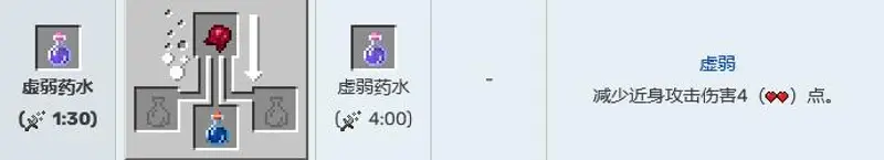 2,虚弱药水,作用为减少近身攻击伤害4点。