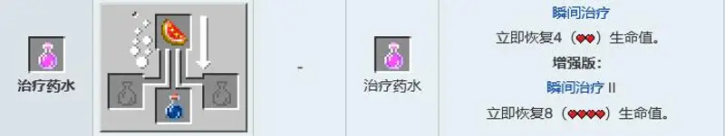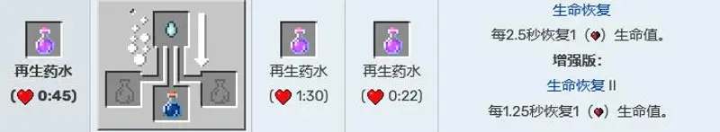 3,再生药水,作用为每2.5秒或者1秒恢复1生命值。