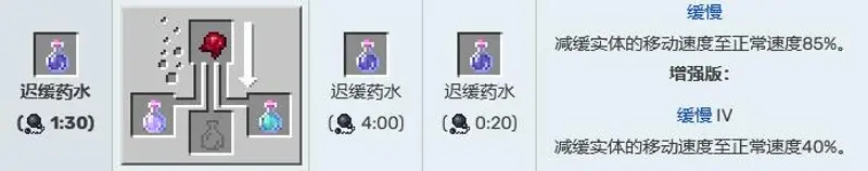 4,迟缓药水,作用为减缓实体的移动速度至正常速度85%或者40%。