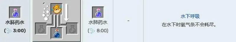 8,水肺药水,作用为在水下时氧气条不会耗尽。