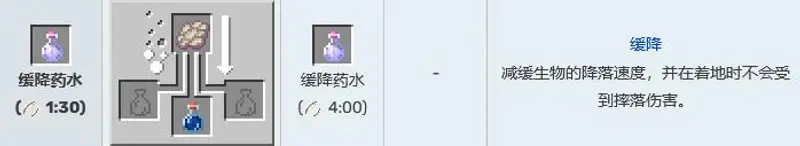 10,缓降药水,作用为减缓生物的降落速度,并在着地时不会受到摔落伤害。