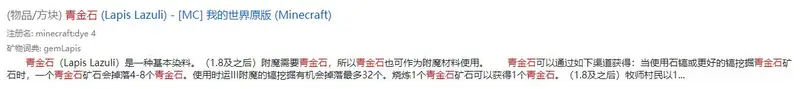 是一种基本染料,还能作为附魔材料使用等作用。