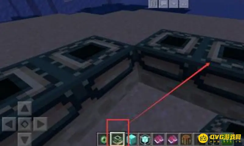3.站到定位方块上,先用传送门框搭建4×4不要4个角的框架,然后再用末影之眼按顺序放到末影门框上。
