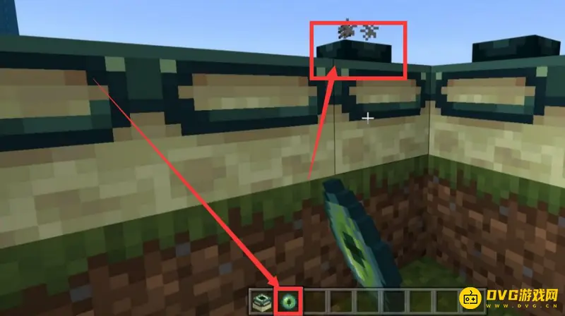 3、站在坑中间,给每个末地传送门摆放末影之眼。