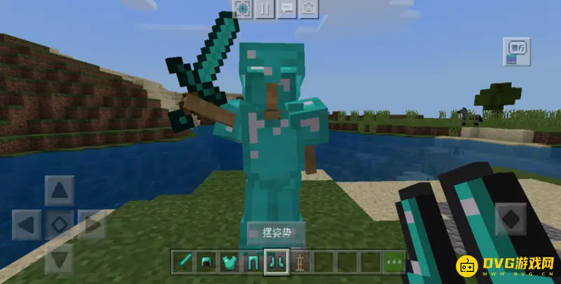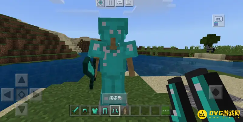 2、然后按下潜行键靠近盔甲架,点击摆姿势按钮。