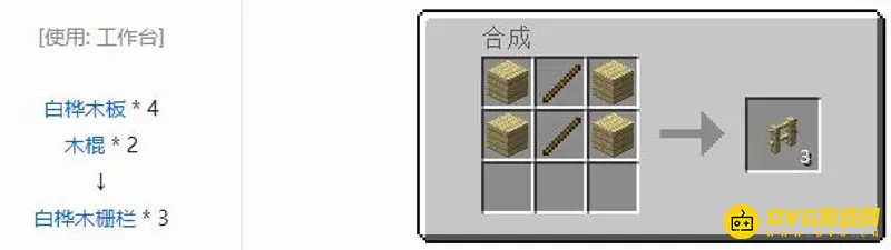 2,然后按照如图所示把白桦木板替换成圆石就可以合成石栅栏了。
