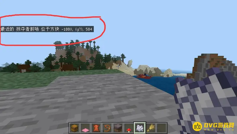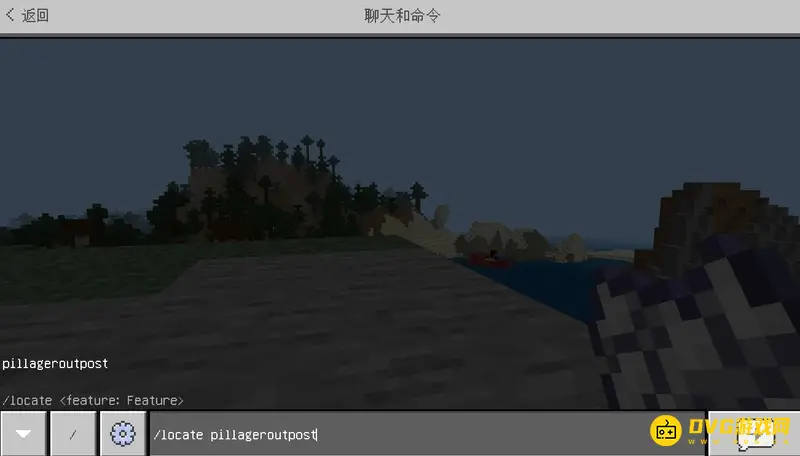 1,首先我们进入游戏聊天框,输入指令/locate pillageroutpost寻找附近掠夺者哨所。