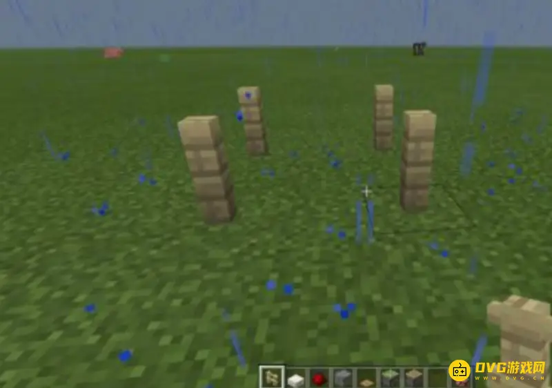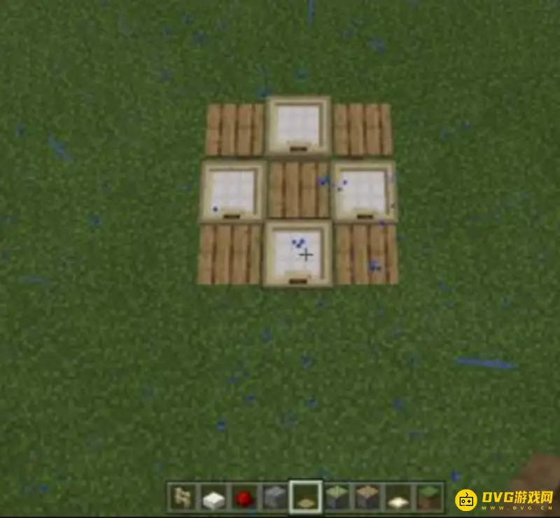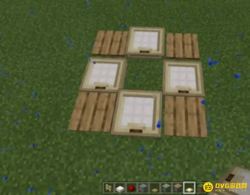 6、最中间可以放置一个方块或者栅栏,在其上方再放上一块压力板,如下图;