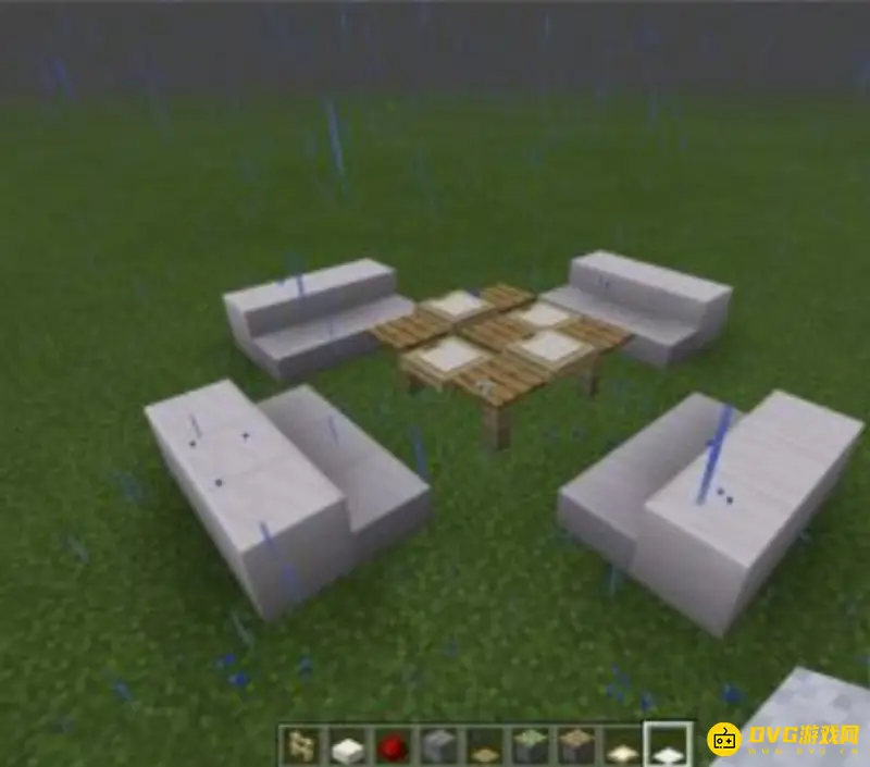 7、最后在周围做出椅子或者沙发,就得到一张好看的桌子了。如下图的展示。